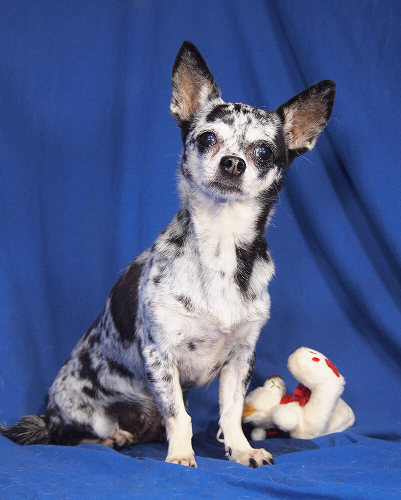 Die Hündin hat eine Schulterhöhe von 23 cm und wiegt 2,6 kg.