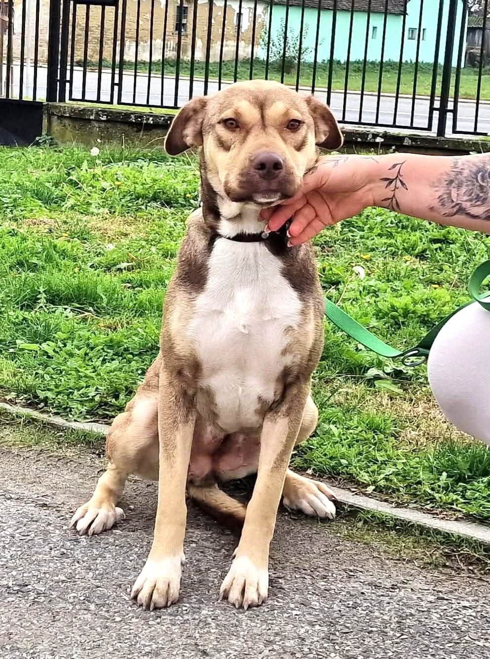freundlich, sehr anhänglich, verschmust, gelehrig, aufmerksam, katzenverträglich, anfangs ängstlichNelly ist ein vermutlich 2022 geborene, kastrierte Mischlingshündin, die trächtig in das Tierheim Beli Manastir in Kroatien kam. Mit letzter Kraft versuchte sie ihre Welpen zu gebären, die jedoch so groß und schwer waren, dass nur ein Kaiserschnitt die Hundemutter retten konnte. Nach der schweren Geburt verlor Nelly 4 kg und musste erst wieder aufgepäppelt werden. Inzwischen hat sie sich gut erholt und wartet schon seit 2 Jahren sehnsüchtig darauf, adoptiert zu werden.