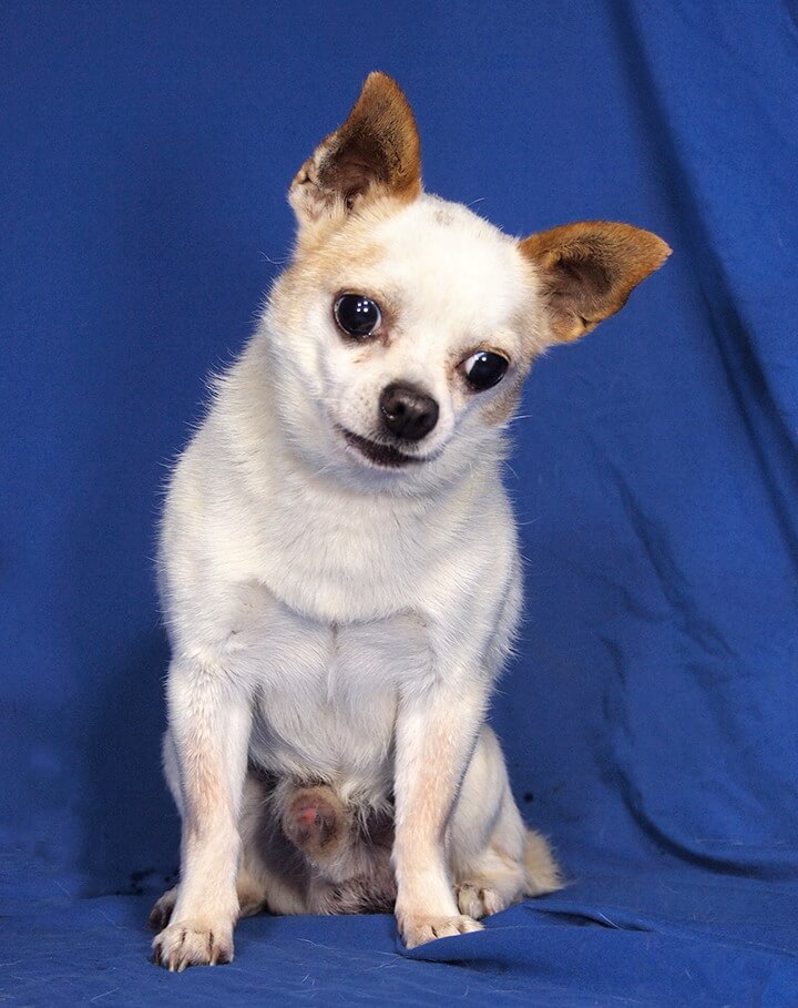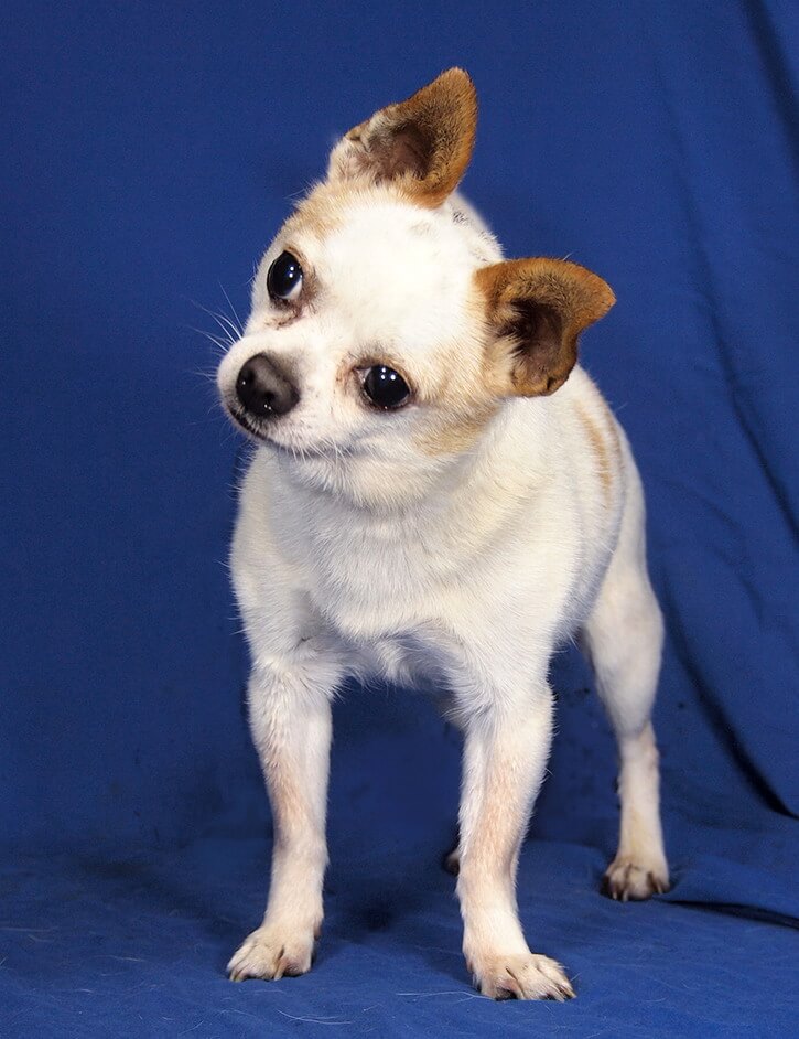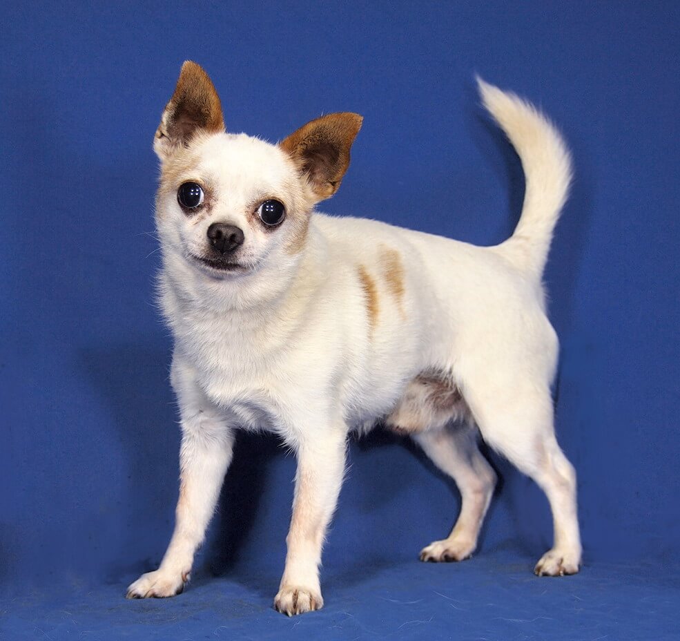 Der Rüde hat eine Schulterhöhe von 22 cm und wiegt 2,5 kg.