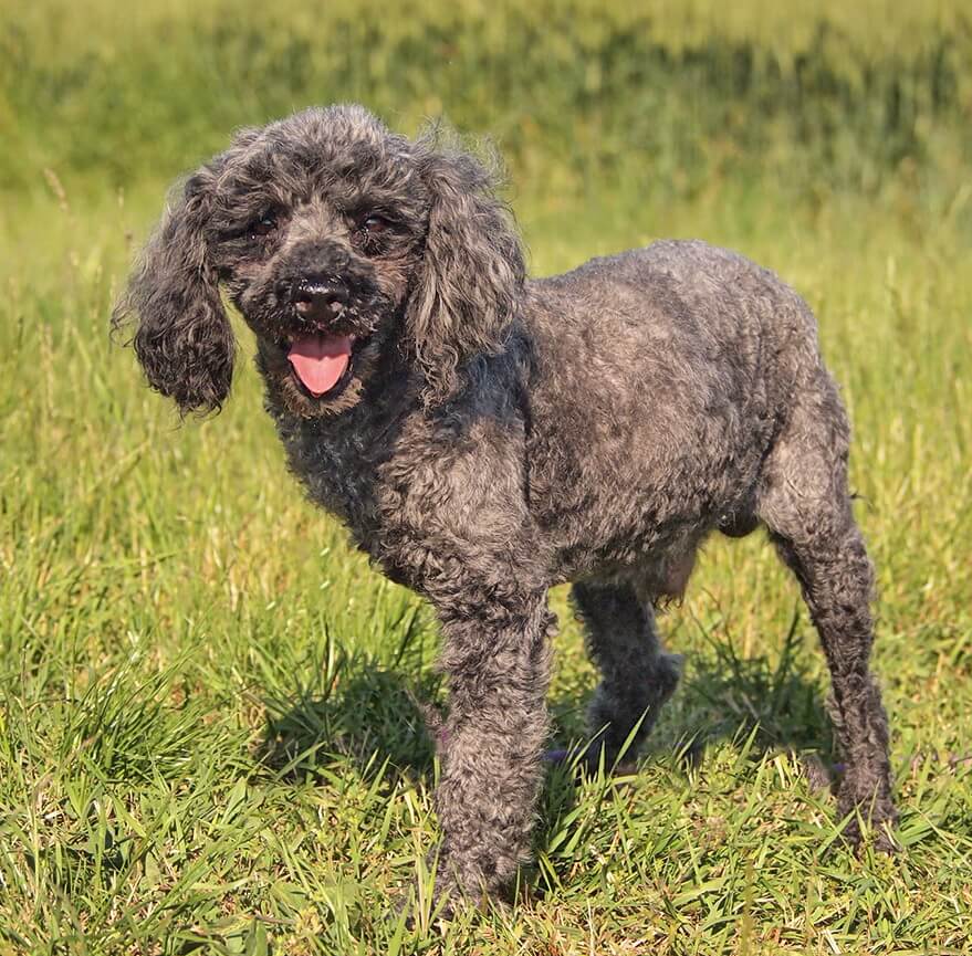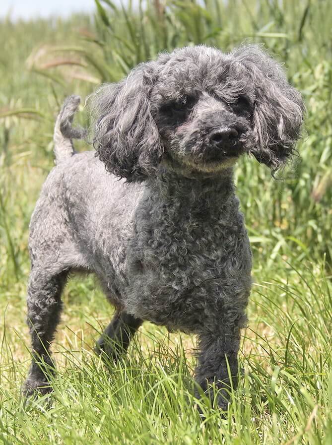 Der Rüde hat eine Schulterhöhe von 40 cm und wiegt 10 kg.