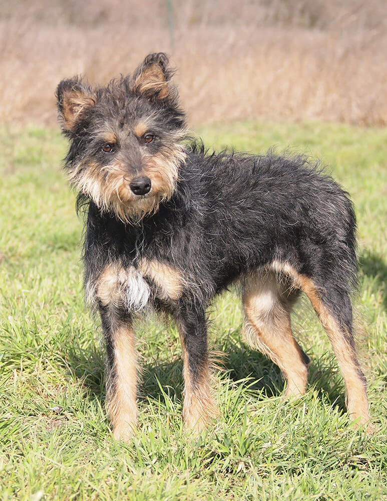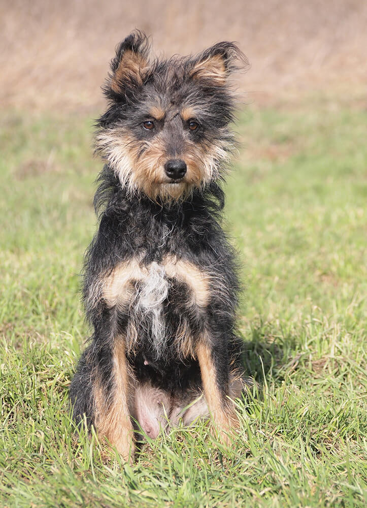 menschenorientiert und sehr freundlich, temperamentvoll, bewegungsfreudig, intelligentTara ist eine vermutlich 2023 geborene, kastrierte Mischlingshündin mit angeborenem kurzem Schwanz, die ausgesetzt gefunden wurde und im Tierheim unserer ungarischen Partnerorganisation Zuflucht fand.