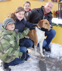 Es ist fast unglaublich, wie schnell Aki Fortschritte macht. Als wir ihn am Samstag von Ihnen übernommen haben, war er ein großer Kerl mit eingezogenem Schwanz und viel, viel Angst. Aber schon während der Autofahrt nach Hause (nachdem er mit viel gutem Zureden dann doch in unser Auto eingestiegen ist) ist er ein bisschen aufgetaut und hat sich mit uns angefreundet.