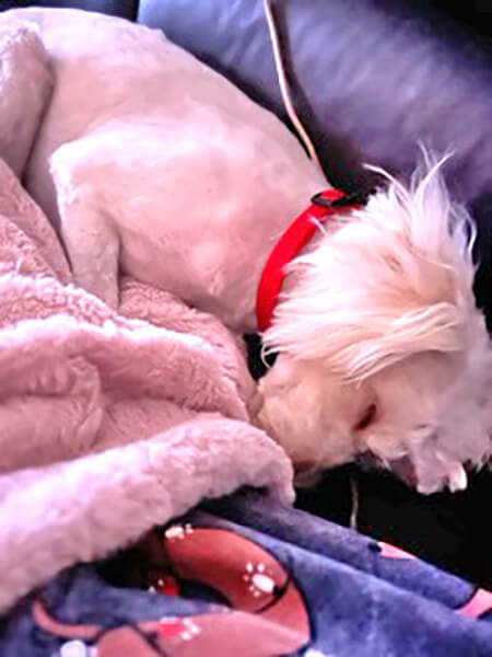 Heute waren wir bei unserer Hundefriseurin, das ganze verknotete und schmutzige Fell ist ab, ALBA genoss ein warmes Bad mit Ölessenzen für die Hautpflege. Nun ist sie sprichwörtlich „hundemüde„ und schläft bei mir.