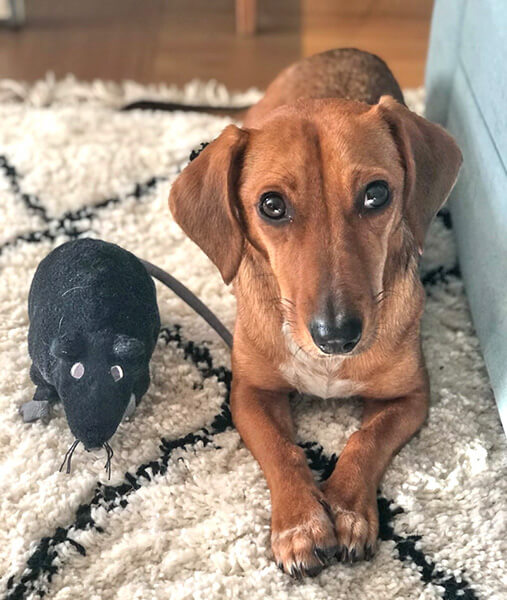 Sie ist ein aktives Hundi und galoppiert sehr gerne auf der Wiese, schnüffelt und lässt sich gern neue Kommandos und Tricks beibringen. Zuhause genießt sie ihren Platz auf dem Sofa und ist eine treue Home-Office-Freundin. Sie versteht sich auch perfekt mit ihrem großen Bruder Rokko (Docker von den Eltern).