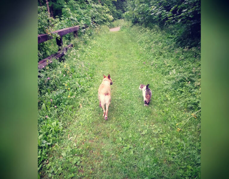 Mittlerweile haben sich auch noch zwei Streunerkatzen und ein Streunerkater dazugesellt, da sich aber die Katzen nicht ins Haus trauen macht ihr das nichts aus. Der Kater hingegen orientiert sich sehr an Azzurra und geht auch sehr oft mit spazieren. Die zwei sind mittlerweile ein eingeschweißtes Team, auch wenn er sie manchmal nervt (aber so ist das mit einem kleinen Bruder 😉)