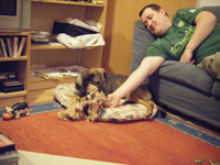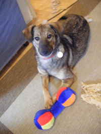 rough and tumble with the other dogs. Its hard to remember the terrified shaking puppy we picked up 6 or 7 weeks ago.