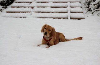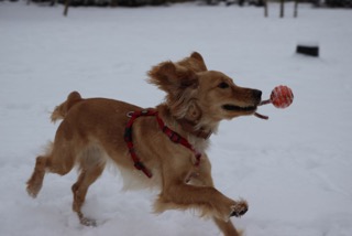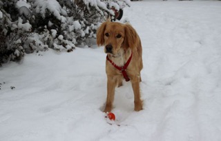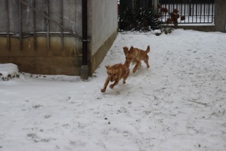 In der Beilage senden wir Fotos von Bellas erstem Kontakt mit Schnee. Dieser macht ihr große Freude und sie stapft und hüpft gerne durch den Schnee.