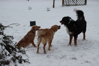 Auf dem Bild „20141229_124708_2“ findet sich links Kenai, in der Mitte unsere Bella und rechts der Berner Sennenhund Balu.