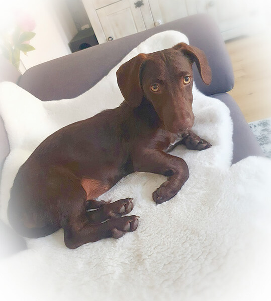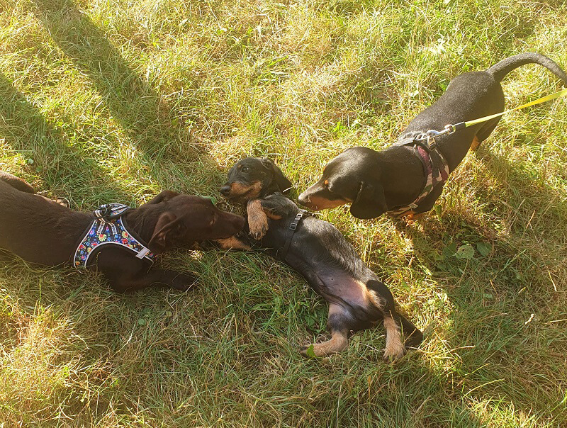Kuschelt viel und ist natürlich überall dabei, auch im Bett schläft sie. Hat schon sehr viele Dackelfreunde.