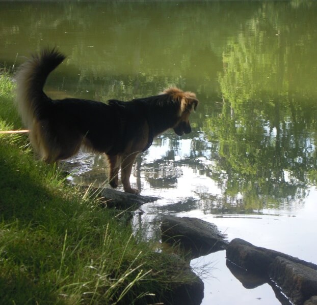 Man sieht mich auch bei meinen neuen Hobby „Fischi schauen“ – die Karpfen sind echt der Hammer (so Auge in Auge) und wegen den Kröten bin ich schon mal in den See gefallen – da hab‘ ich ziemlich doof aus der Wäsche geguckt (sagen jedenfalls Frauli und Herrli – hahahaha).