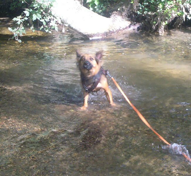 Zuerst mal ein ordentliches Erfrischen im Bach – das ist voll lustig, da kann ich mich so richtig austoben.