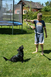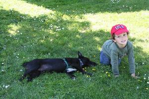 Die Vormittage im Büro verschläft er meistens, dafür freut er sich riesig, wenn die Jungs nachhause kommen und mit ihm spielen. Leider kann ihn unsere Katze Coco gar nicht leiden. Sie ist in den Keller gezogen. Aber dafür kann Billy ja nichts. Er ist ein superbraver und sehr kluger Hund. Wir würden unseren Billy nicht mehr hergeben.