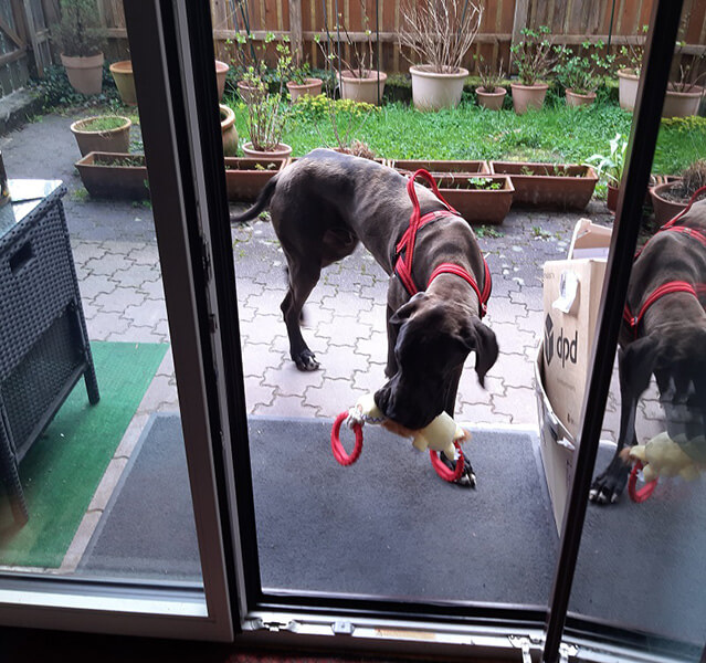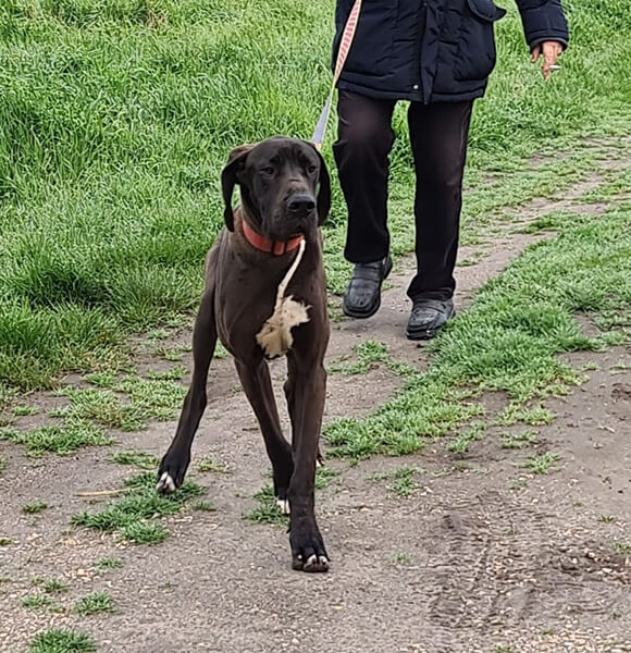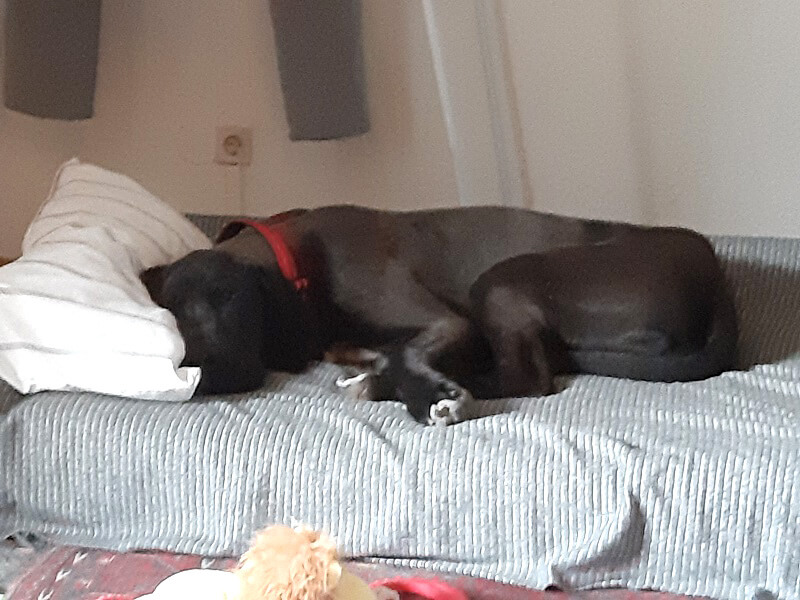 Wir vermuten dass er jünger als 16 Monate ist - er wirkt wie unser Duke mit ca.12 Monaten war... er ist noch ein totales Baby...