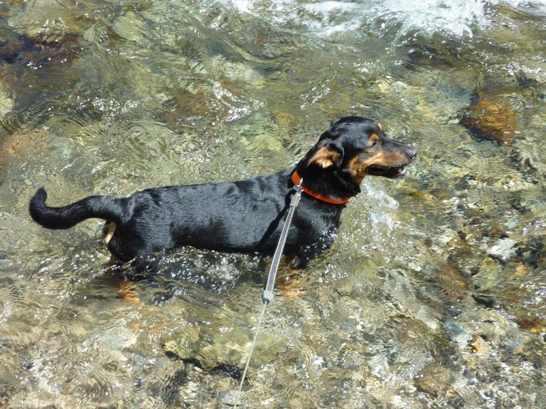 Blacky geht sehr gern mit mir in die Berge und geniest die Abkühlung im See oder Bach. Ab nächste Woche wen der erste Teil der Hundeschule zu Ende ist gehen wir auf die Alm meines Schwiegersohnes und werden dort auf ca. 40 Jungrinder aufpassen - natürlich mit Fridolin. Wir werden dann bis Anfang September dort oben sein (je nach Wetter). Werde mich dann wieder melden, und versuchen ein Video zu machen und es ihnen schicken.