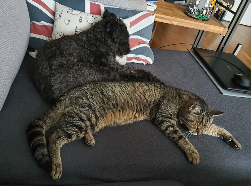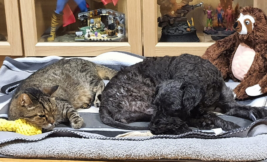 Lenny, der Hauskater, darf jederzeit mit Bonnie kuscheln und auch Bonnie fordert mittlerweile Streicheleinheiten von uns ein, das uns natürlich besonders freut.