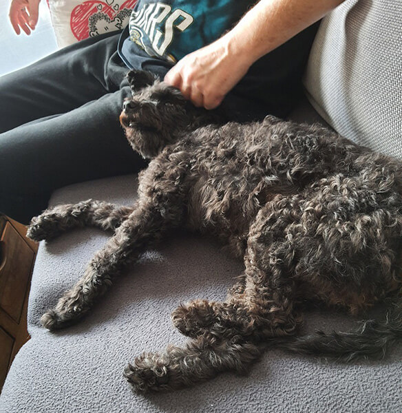 Mittlerweile hat sie viele Situationen kennengelernt. Spannende Dinge wie U-Bahn fahren, Besuche in Restaurants und die Fußgängerzone aber auch alltägliche Dinge wie am Sofa sitzen, sich in der Wohnung frei bewegen, mit Herrchen kuscheln oder Verwandte besuchen. Ihr Taubheit ist hierbei oft von Vorteil, da sie Lärm nicht bemerkt, überhaupt jetzt wo Silvester vor der Tür steht. Sie scheint gut damit zurecht zu kommen und wir haben gelernt damit umzugehen, trotzdem sprechen wir ständig mit ihr (das werden wir uns wahrscheinlich nicht mehr abgewöhnen).