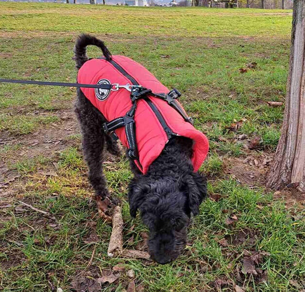 Die anfänglichen Schwierigkeiten mit dem Gassi gehen haben wir inzwischen gut gemeistert. Bonnie mag gemütliche Spaziergänge und das Treffen mit anderen Hunden. Sie liebt alle Hunde und wird von jedem anderen Hund gemocht. Überall wo sie hinkommt schließt sie Hunde-Freundschaften. Das operierte Bein verwendet sie nicht beim Laufen/Gehen. Trotz Training und Massagen ist es ihr offenbar lieber auf drei Beinen durch die Welt zu hopsen. Sie schafft problemlos 3km und zeigt dann an wenn sie müde ist. Dann wird sie im Hunderucksack getragen (den sie gerne mag) und sieht die Welt aus einer höheren Perspektive.