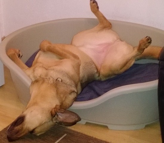 Sie ist nun auch schon 6 Jahre alt und bekommt ein weißes Schnauzerl. Trotzdem ist sie noch sehr aktiv und liebt es allesmögliche zu apportieren, am liebsten aber Frisbees. Alleine bleiben kann sie noch immer nicht, ohne das ganze Haus zu zerlegen. Auch ihre Hundefreunde sucht sie weiterhin selbst aus. Jedoch hat sie 2 „alte“ Freundinnen, die sie regelmäßig besuchen kommen und stundenlang im Garten herumtollen. Einen neuen Freund hat sie auch schon gefunden, mit dem geht sie spazieren. Wie man sehen kann, geht es ihr bei uns weiterhin sehr gut und sie ist weitgehend entspannt (siehe die Schlafpositionen ;-) auf den Fotos)