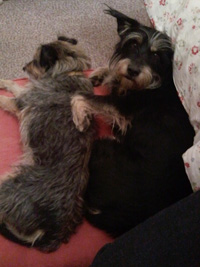 Nach kleinen Startschwierigkeiten hat er sich schnell eingelebt und sich mit unserer sehr aktiven Terrierhündin Nikita ebenfalls gleich gut verstanden.