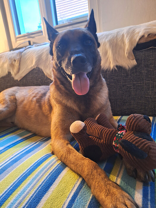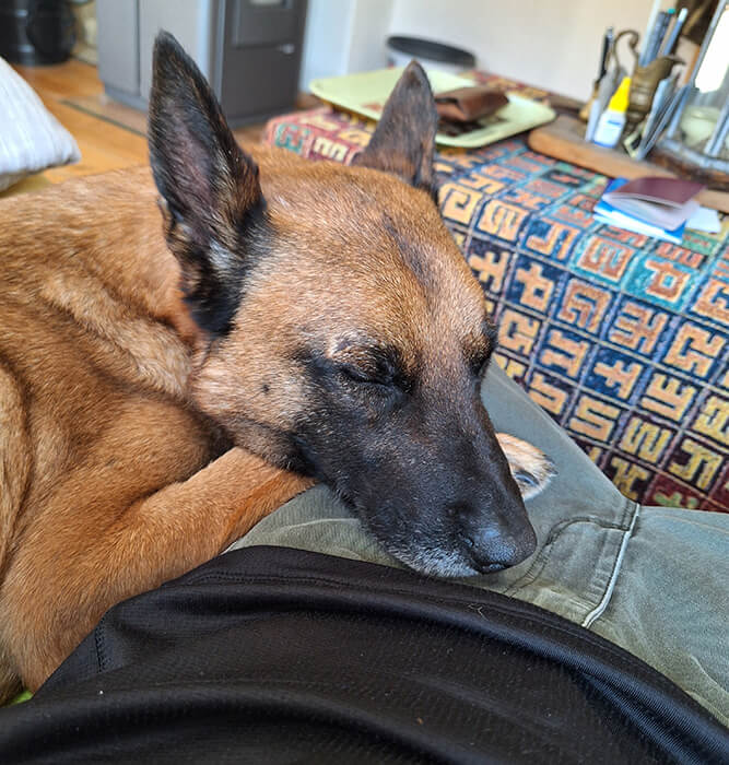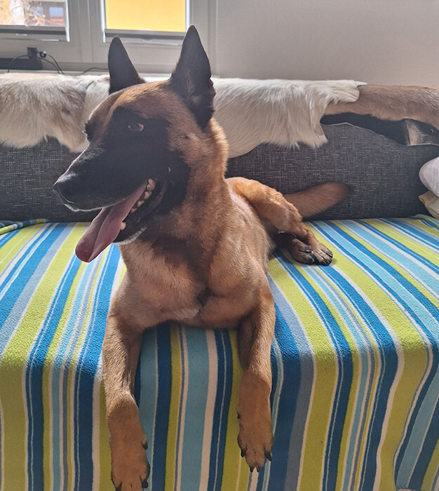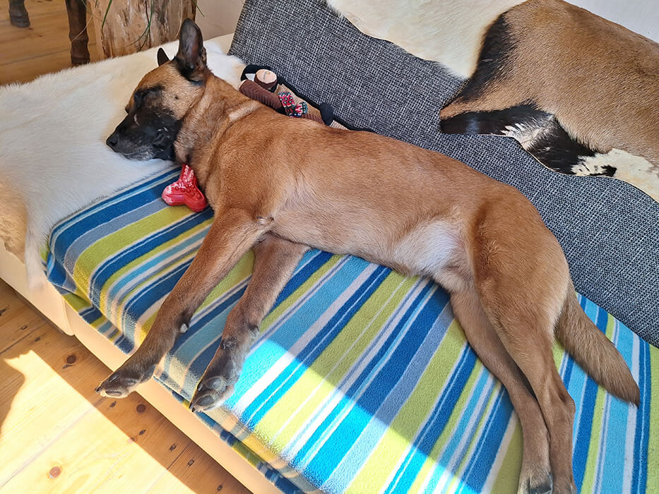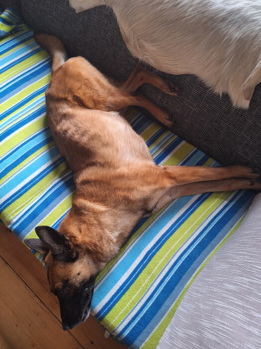 Er bellt nicht, versteht sich prima mit unserer Hündin und macht auch sonst echt KEINE MÜHE 😁