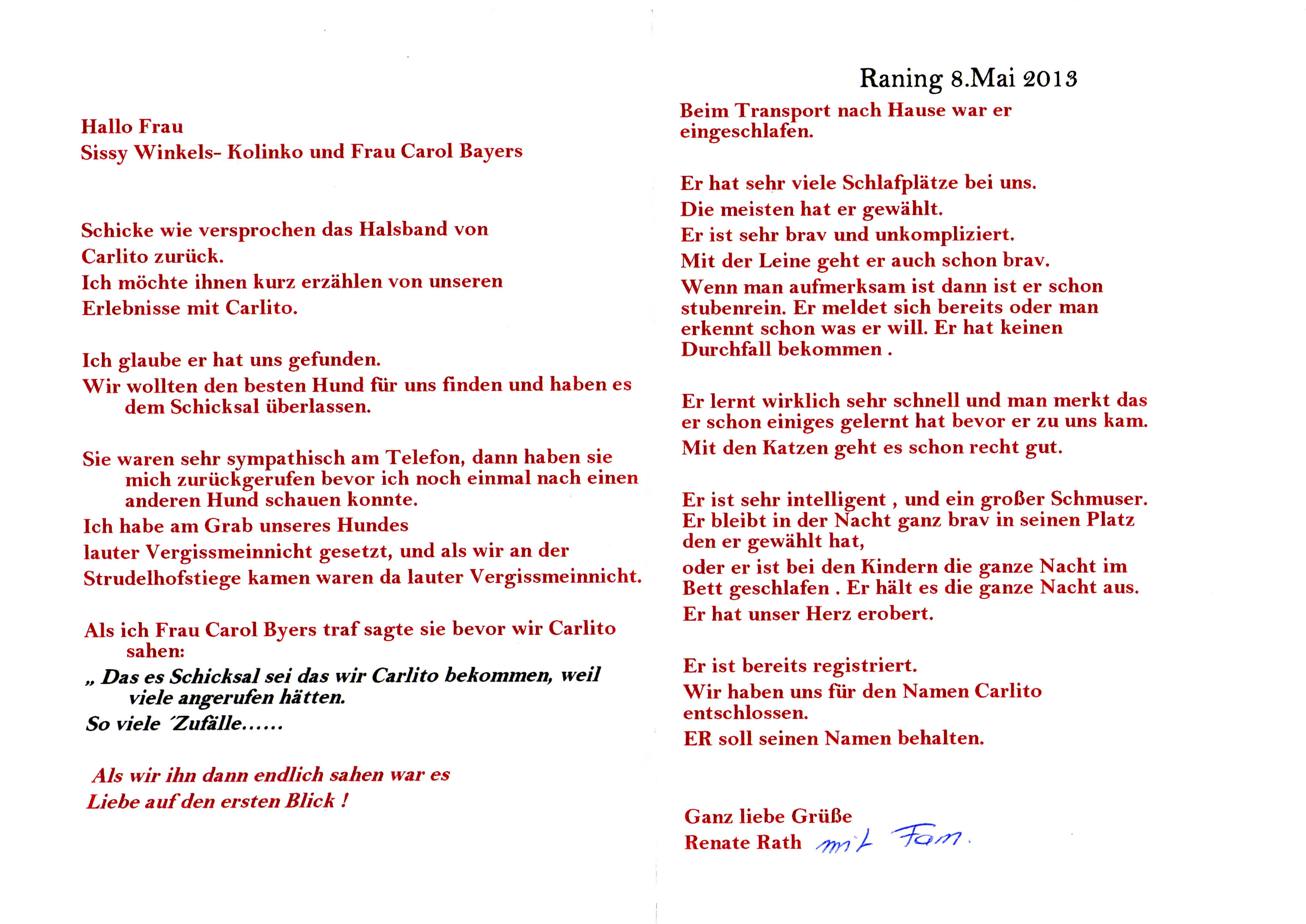 ich möchte ihnen kurz erzählen von unseren Erlebnissen mit Carlito ...