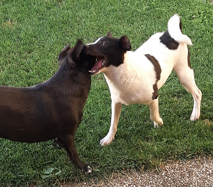 Sie spielen sehr viel miteinander, eigentlich dauernd, außer, sie schlafen. Beide sind treue Vasallen ihrer "Chefin" Nina. Nina hat Pepper sofort akzeptiert.