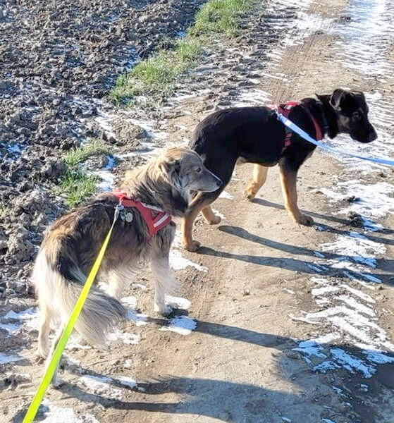 Er orientiert sich an seiner Hundefreundin Scarlett, die für ihn sehr wichtig ist, um sich einiges von ihr abzuschauen und um von ihr zu lernen. Gemeinsame Spaziergänge machen Cooper schon richtig Spaß und man spürt seine Freude. Auch mit unseren Katzen, die Cooper gar nicht kannte und auch vor ihnen Angst hatte, hat er schon Freundschaft geschlossen.