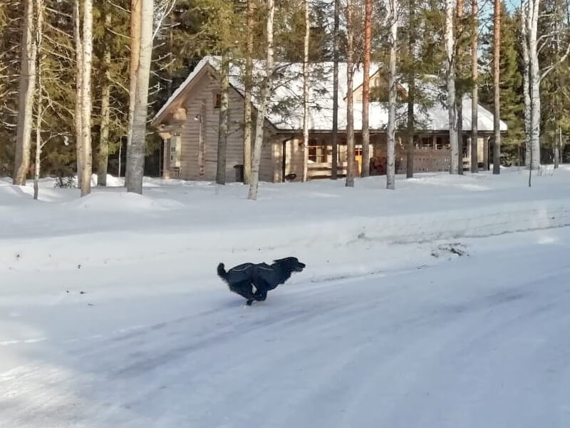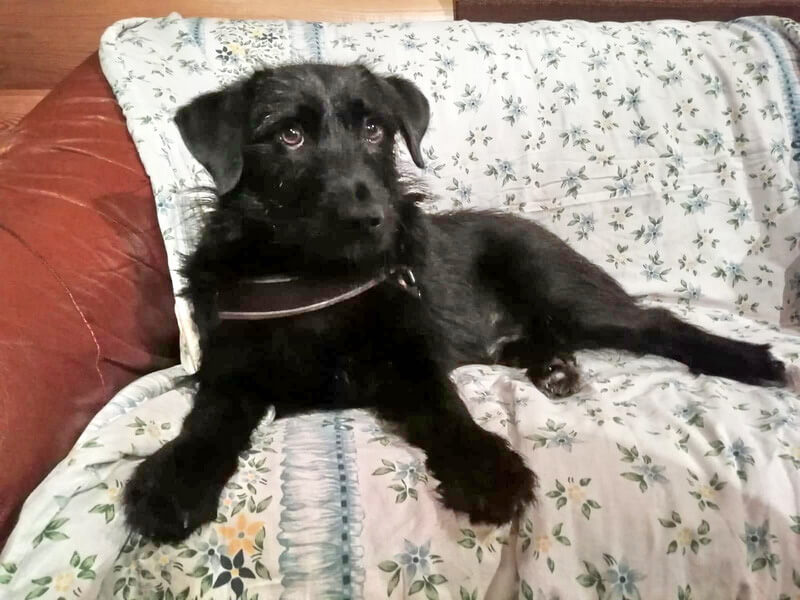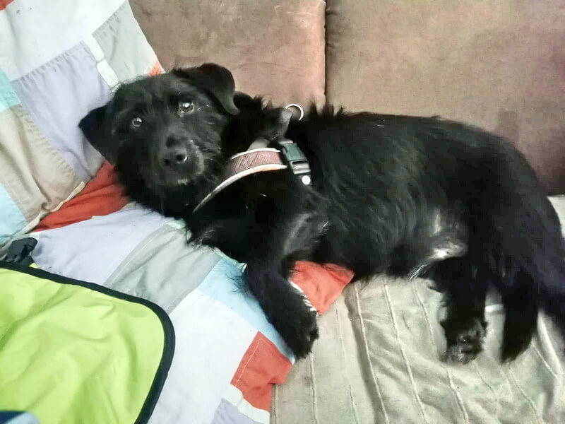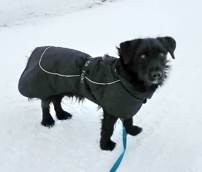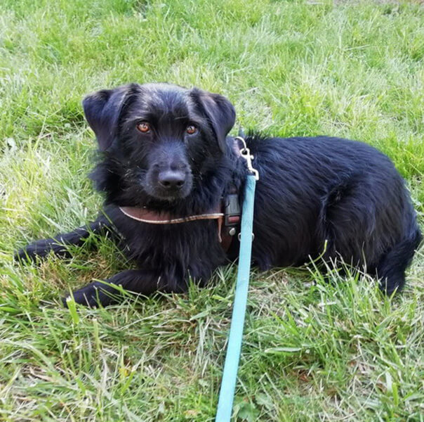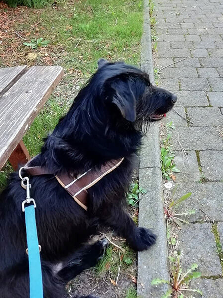Dagobert hat immer noch Angst vor anderen Personen und bellt sie oft an, aber wenn wir uns zwischen ihn und die Leute stellen klappt es meistens, dass er aufhört. Er kuschelt gern, kaut gern an seinen Knochen und trägt Schuhe durch die Gegend, Schnee findet er super und draußen ist er gern.