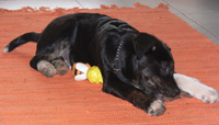 Dusty zeigt nun was er so drauf hat, einfach ein Energiebündel. Mit unserer Katze hat er schon Bekanntschaft gemacht, ich glaube daraus könnte sich noch eine Freundschaft entwickeln. Ein gewisser Respektsabstand wird zwar noch eingehalten, das ist aber auch schon alles.