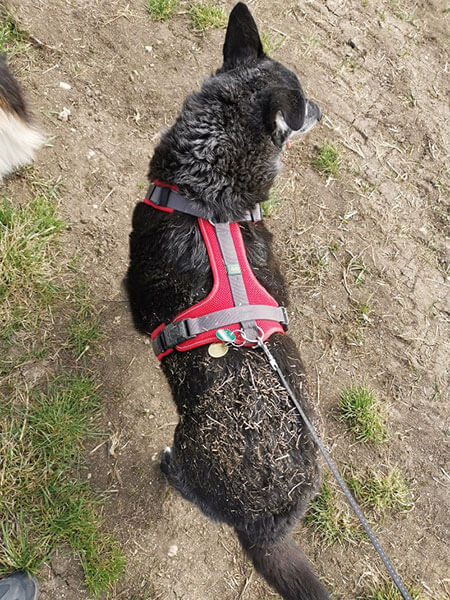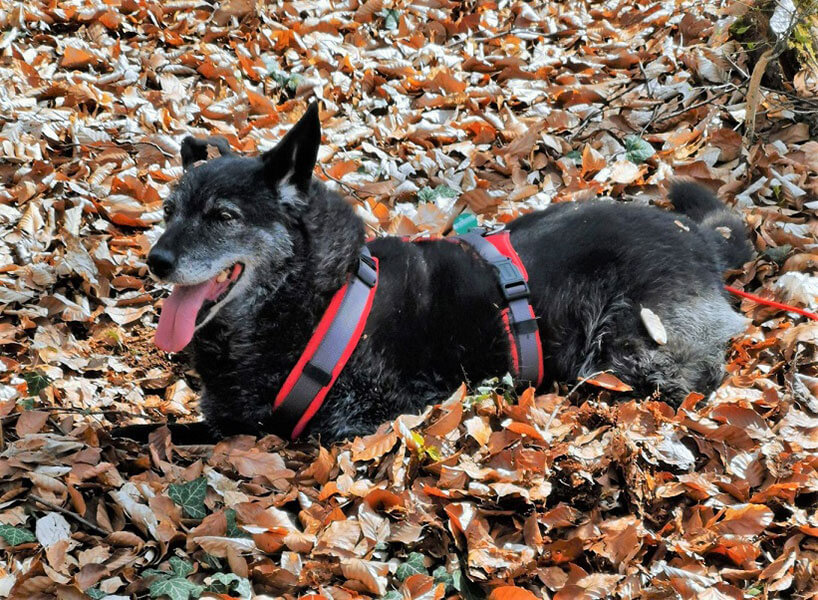 Das Abnehmprogramm läuft auch sehr gut, mittlerweile sind wir von ca. 27kg auf ca. 23kg und sie fühlt sich viel viel wohler. Wo sie nur kann wälzt sie sich und kugelt herum, das sieht man auch auf einem Foto am Fell, wir nehmen alles vom Wald und Feldboden mit 😉