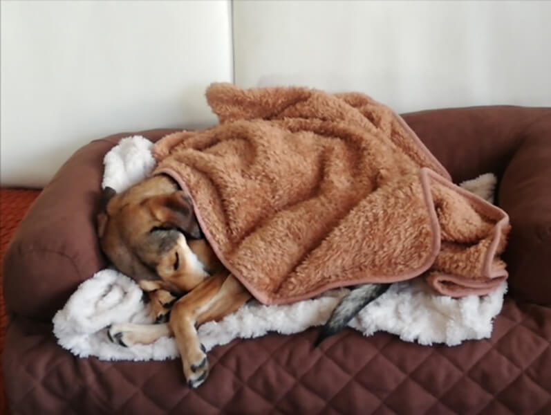 Seit die Halskrause weg und der Bauch abgeheilt ist, kehrt hier immer mehr "Normalität" ein und Emma blüht richtig auf. Draußen ist sie energiegeladen, drinnen ein wahrer "Couchpotato", sie hat ihren eigenen Liegeplatz auf dem Sofa bekommen. ;) Die Wohnung ist nun, trotz Geschirrspüler, Waschmaschine etc., ein wirklicher "Safeplace" für sie geworden, in dem sie sich ausruhen, mit uns spielen und trainieren kann.