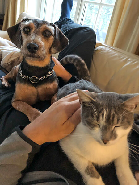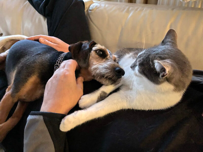 hier ist er mit nana - ehemals jomy und ebenfalls von animal care austria - im bild! enzo ist ganz und gar teil unserer tierischen Familie!