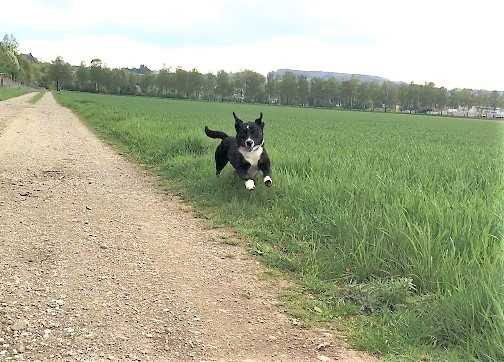 Sie hat sich trotz der kurzen Zeit gut eingelebt. Wir besuchen zweimal in der Woche die Hundeschule und es wird von Mal zu Mal besser. Bei großen Spaziergängen darf Finja zum Teil schon ohne Leine gehen. Sie hat bereits viele Hunde kennen gelernt und ist absolut kein Problem. Kleine Kinder mag sie sehr gerne und im Reitstall mit den Pferden ist es auch kein Problem.