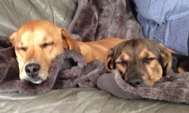 Aber ich hab ja jetzt meine Gerti und die ist einfach super. Mit der kann ich rumtoben, spielen und spazieren gehen. Die Kleine hat eine gute Kondition und die läuft sich von mir auch was beibringen, z B. schläft sie jetzt mit mir bei Frau- und Herrchen!!!