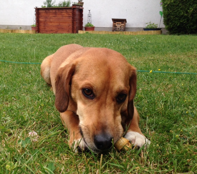 Die Verzögerung hat damit zu tun, dass ich mich mit dem blöden Husten bei Gerti (früher Willa) angesteckt habe. Bin zwar geimpft, was aber die Viren nicht abgehalten hat, sich bei mir einzunisten! Jetzt krieg ich lecker Hustensaft, darf leider nicht schwimmen gehen und auch nicht zu anderen Hundefreunden.