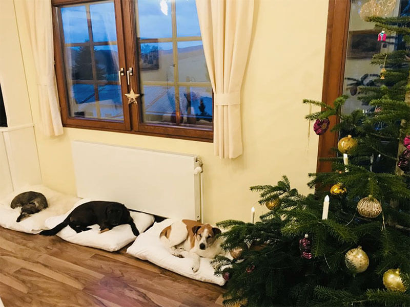 mein erstes Weihnachten im eigenen Zuhause - mit meinen Freunden Einstein und Ester.