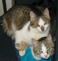 Sie haben schnell einen Platz auf der Wendeltreppe gefunden. Dafür sind wir nicht so begeistert, weil es kalt ist (Treppe ist aus Eisen). Wir haben 2 Fleece-decken hingelegt, und sie schlafen darauf.
