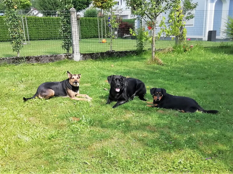 hier sind Hugo's Freunde, Schäfermischling Carlos, Labradorm. Kira, und wir waren noch auf einer Alm. Hugo fühlt sich überall sehr wohl.