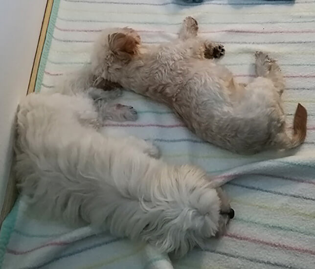 Im Namen meiner Schwiegermutter übersende ich Ihnen einige Bilder von Iggy. Auf einen Bild liegt er mit meiner Malteser Dame Noni zusammen auf der Decke. Die zwei sind ein Herz und eine Seele. Iggy geht es bestens :-)