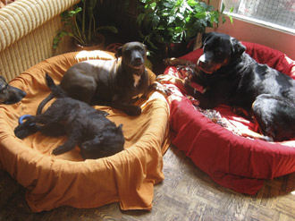 Sorry, hat bissi gedauert, bis ich mich melden konnte, aber ich hatte alle Pfoten voll zu tun mit meiner neuen Familie, die ich mittlerweile schon recht gut erzogen habe.