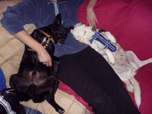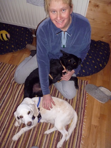 Die Johanna hat sich schon gut eingelebt. Wir laufen jeden Tag 1 bis 2 Stunden und trotz ihres Alters ist sie noch sehr übermütig und hüpft dem Blacky hinterher. Sie schaut immer zurück, ob noch alle da sind. Stubenrein ist sie auch schon fast. Vorher mussten wir fast jede Stunde hinaus, jetzt hat es sich normalisiert. Wir waren auch schon beim Tierarzt Blut abnehmen. Bis auf einen Nierenwert ist alles OK. Dafür bekommt sie jetzt Tabletten. An der einen Milchleiste hat sie noch einen Tumor. Unser Tierarzt meint am besten wäre eine Mistelterapie. Damit fangen wir dann im neuen Jahr an. Mit unserer Katze ist es kein Problem, die Pferde hat sie zuerst angebellt, jetzt sind sie für Johann uninteressant. Ihre Augen sind auch viel klarer als vorher und die Entzündung in den Ohren ist abgeheilt. Wir hoffen, dass sie noch viel Zeit mit uns verbringen kann.