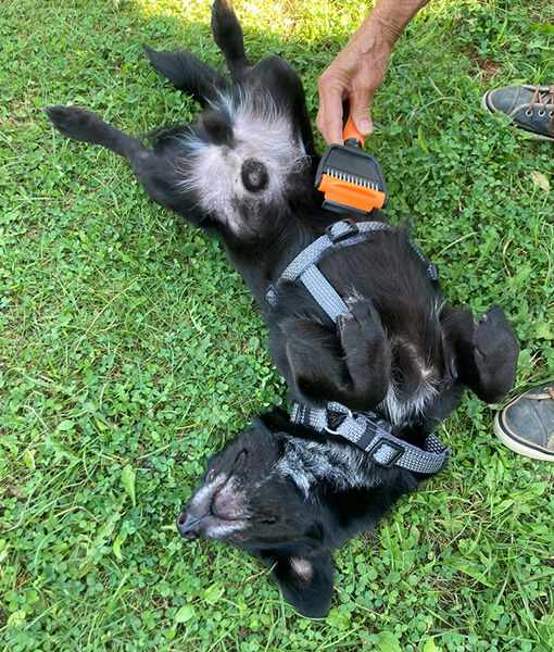 vielen Dank für das Foto! Johnny hat sich mittlerweile schon gut eingelebt und ist wirklich ein Traumhund. Er ist ein wahrer Kuschelbär, von Beginn an stubenrein, hat keine Scheu vor sämtlichen Haushaltsgeräten, dem Aufzug etc.