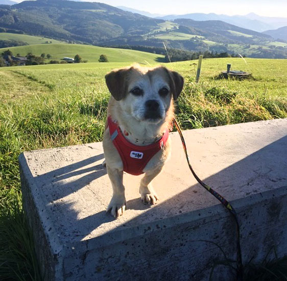 Bei meinem Spaziergang im Wald kenne ich mich schon gut aus! Wenn ich etwas Interessantes sehe, kann ich aus dem Stand einen Meter hoch springen!