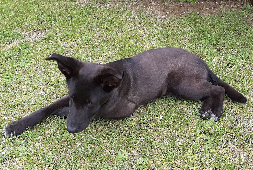 In unserem Garten jagt er den Bällen hinterher und fühlt sich wohl, nur draußen außerhalb des Gartens ist er noch ängstlich und auch das Gehen an der Leine müssen wir noch üben. Aber mit viel Liebe und Geduld bekommen wir das hin.