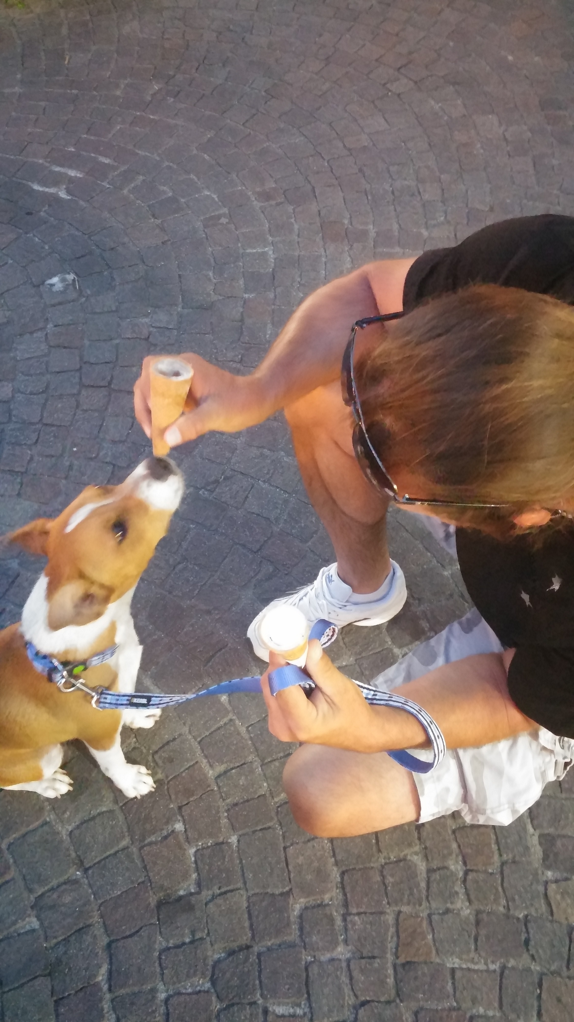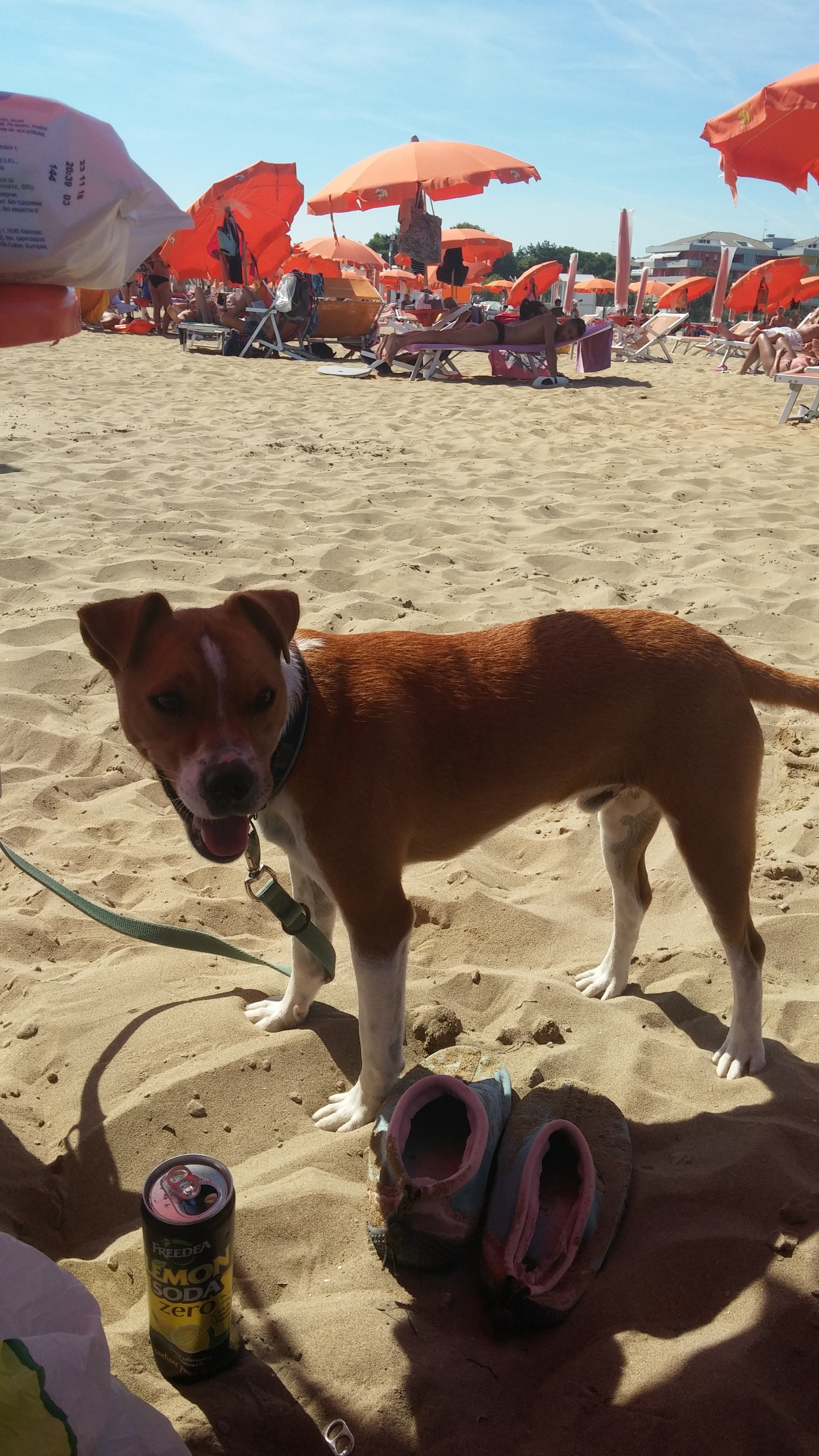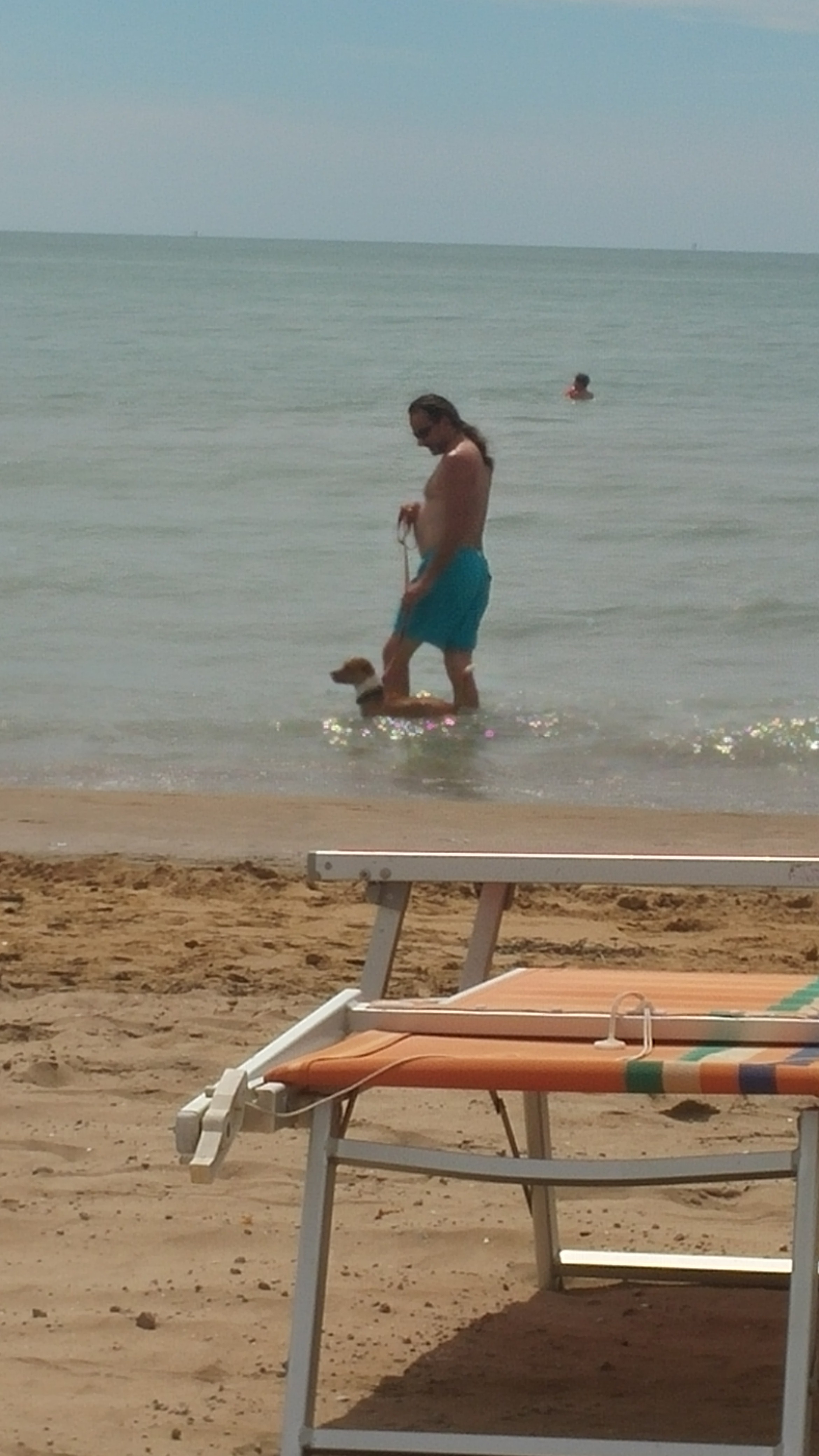 nach meinen Schwimmversuchen bei uns im Flussbett dachte ich mir, ich packe einfach mal frauli und herrli ein und fahre ein paar Tage nach "bella Italia" an den Hundestrand "spiaggio del pluto" voll viel los, Sonne, Sand und Meer. Tja was will man mehr, am Abend dann noch Pizza, Pasta und Eis. Leider sind wir schon wieder zu Hause. Aber nächstes Jahr geht's sicher wieder nach Italien, das Klima gefällt mir voll. U d im Meer zu schwimmen ist auch voll toll.