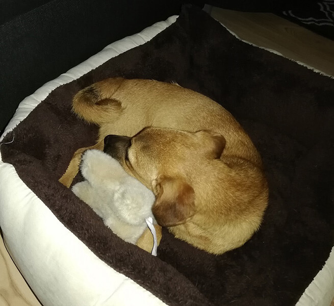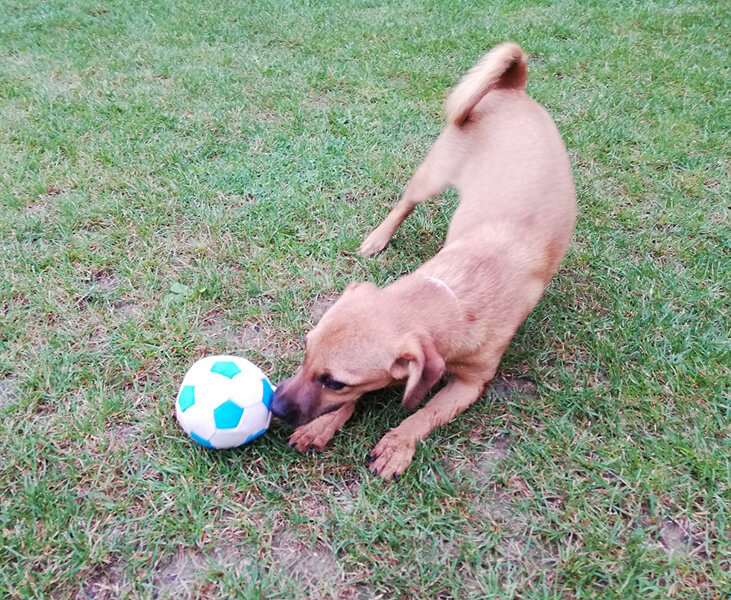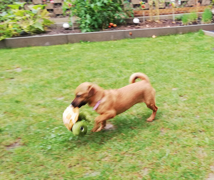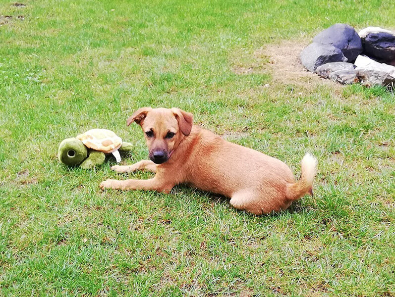 Sie hat sich schon total gut bei uns eingelebt und ist so brav – ist ab der 2. Nacht stubenrein, total verschmust, super verträglich mit anderen Hunden im Bekanntenkreis & sehr folgsam. Sie ist ein richtiges „Springinkerl“ und zeitweise „fetzt“ sie durch unseren Garten und das ist total schön, ihr dabei zuzusehen.