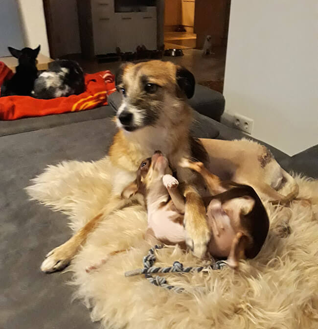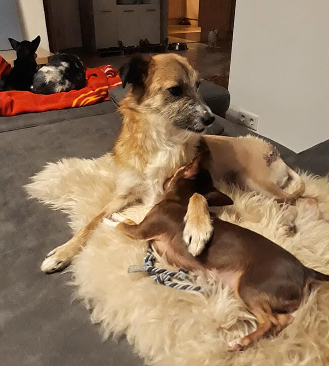 Sie läuft durch die Gegend, bekommt das Futter serviert, schläft mittlerweile bei mir im Bett und ich glaube, dass sie sich richtig wohlfühlt bei uns!