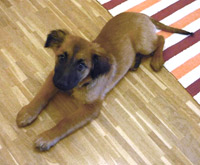 Sie kann schon kleine Kunststücke wie "Pfote geben" und "Rolle". Stubenrein ist sie schon seit einigen Wochen und sie folgt bereits irrsinnig brav auf die Kommandos "Sitz", "Platz" und "Hier".