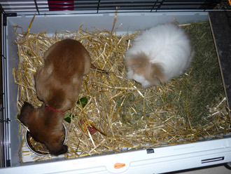 Natürlich probiert sie, da sie ja sooo gerne frisst, immer wieder aus dem Hasenkäfig Karotten, Äpfel und dergleichen zu stehlen...auch das Wasser aus der Hasenschüssel schmeckt ja um sooo vieles besser ;-))) ich habe ihnen ein Foto angehängt, das unsere Lina im Hasenkäfig zeigt, in den sie immer wieder hinein kroch um an die Futterschüssel zu gelangen (mittlerweile passt nur mehr ihr Kopf durch die Öffnung ;-)))