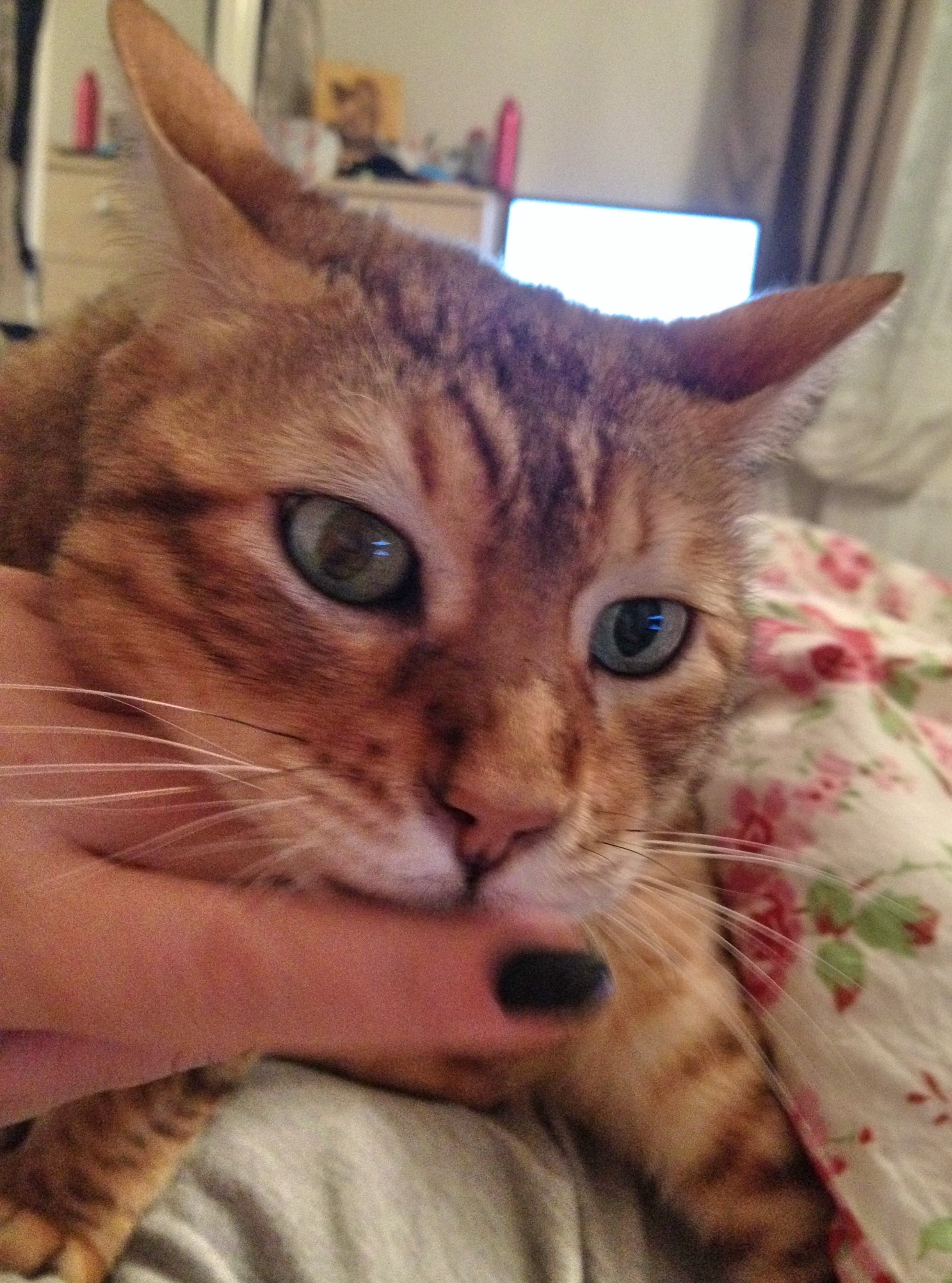 Jeden Abend schlafen die beiden bei mir im Bett und wecken mich in der Früh auf, in dem sie jeden Tag den Blumenstock runterschmeißen.
